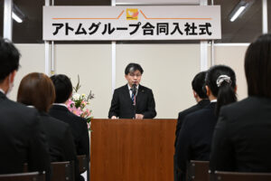 新しい年度のスタートとともに、アトムグループでは新入職員を迎える入社式を開催いたしました。
