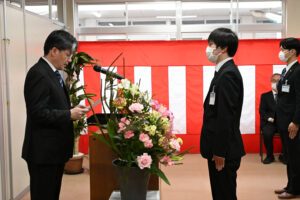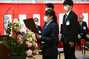 新入職員代表者より決意表明。新社会人として意気込みや決意を述べていただきました!